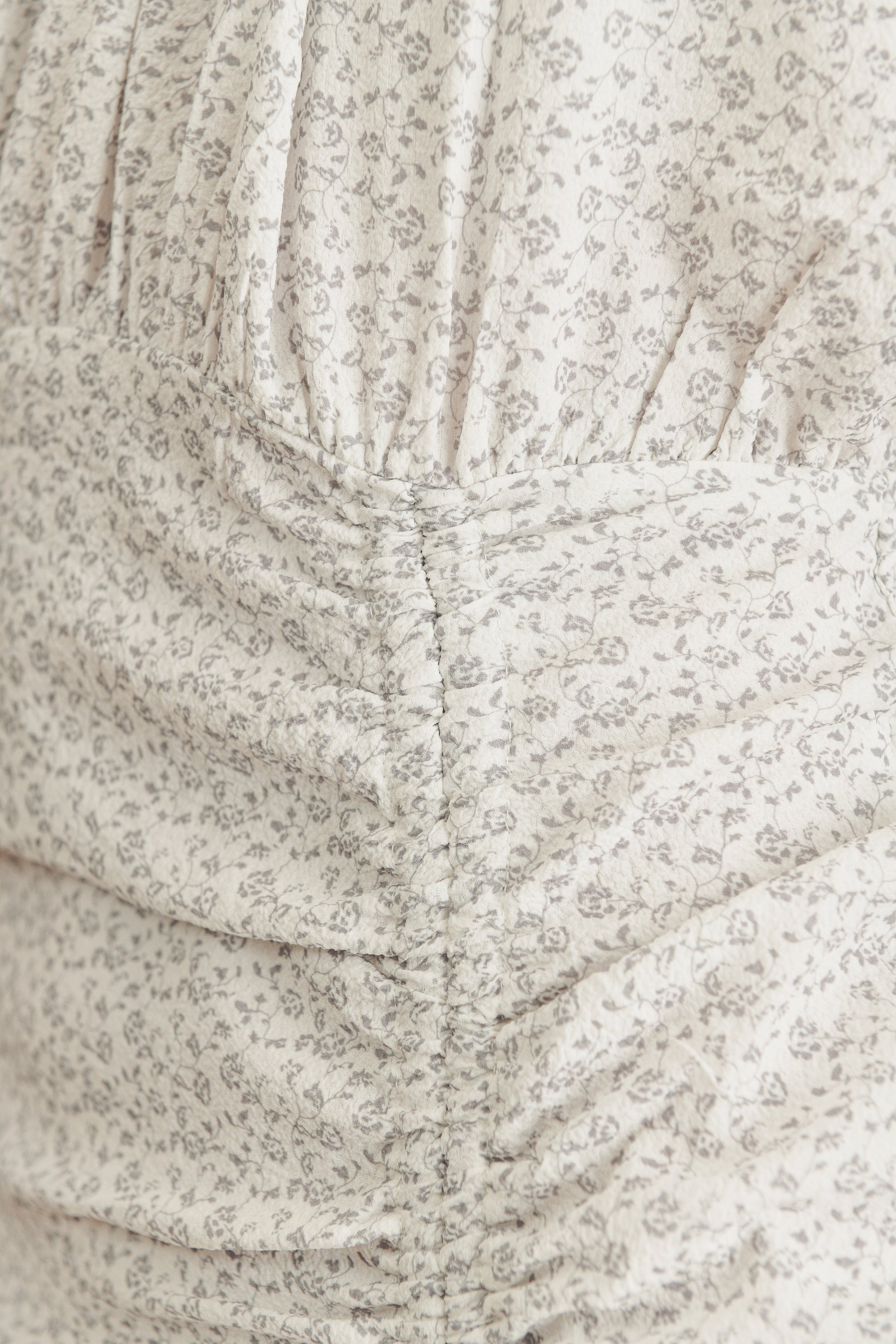 Dress features halter neck tie, adjustable front hip tie that can loosen or tighten, smocked back, sliver floral print and fully lined. Paired with our golden heart locket necklace, flutter ring, and tiny butterfly stud earrings.