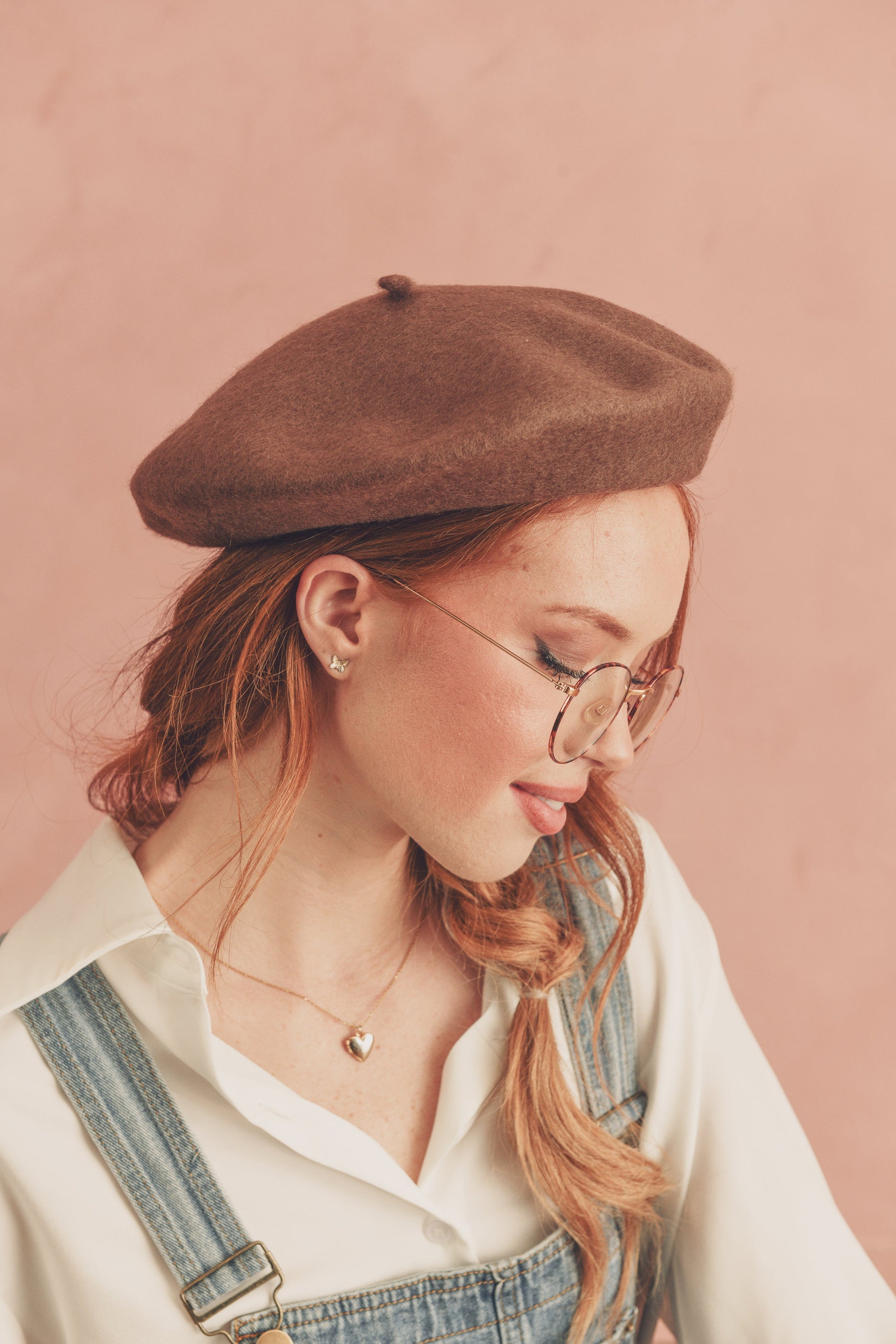 Wool round classic beret hat. Hat features signature tip located in middle of hat.